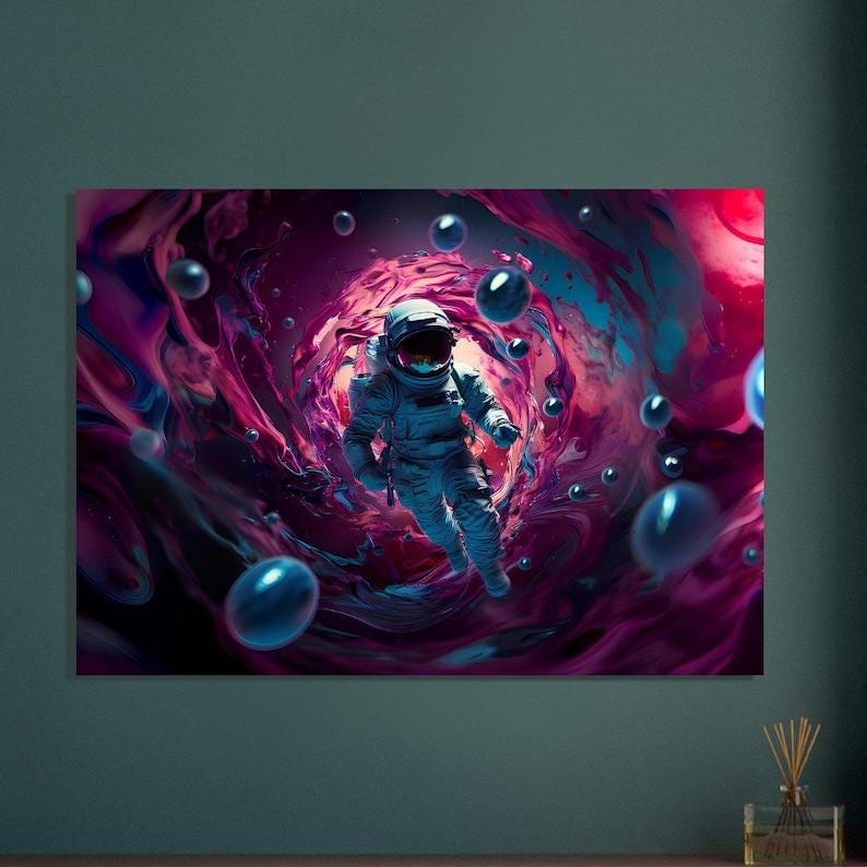 This amazing piece of art depicts an astronaut traveling through an alien tube. It is an amazing and inventive image. This piece of art inspires curiosity and exploration. This artwork is very appealing because of the brilliant color combination. It generates profound interest and joy. The rich, calming shades of the backdrop create a calm atmosphere that heightens the strange feeling. In this painting, the astronaut’s investigation of the mysterious tunnel — which stands for a spirit of inquiry and discovery — is what makes it unique. In this unique painting, the artist is trying to reflect the astronaut’s high spirit.