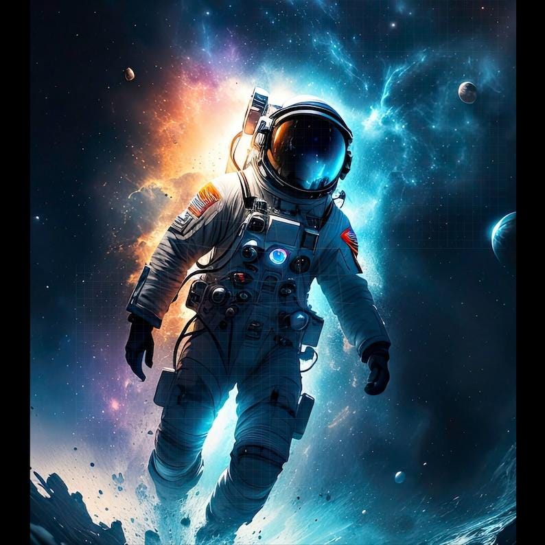 This wonderful piece of art, which shows an astronaut exploring the cosmic world, is imaginative and endearing. The astronaut is surrounded by a captivating background of stars and planets as they effortlessly drift across the huge size of space. The astronaut appears cheerful as they set out on their cosmic adventure. This picture is incredibly appealing because of its vibrant color scheme. It evokes a deep sense of surprise and joy. Calm, rich colors painted on the backdrop provide a peaceful atmosphere.